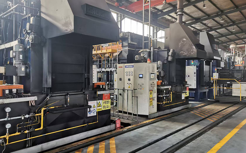 共有4条生产线(10台多用炉、8台回火炉、7台清洗机),最高处理温度950℃,最大有效尺寸1500×900×900,最大装载量1.5吨,年处理能力8000吨(渗碳淬火),可进行汽车零部件、农机配件、工程机械零部件等的渗碳淬火、碳氮共渗、调质、正火等