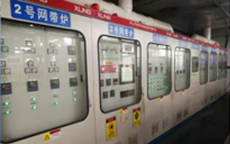 网带宽600mm,最高处理温度950℃,加热分4区分别控制,配备氧探头进行碳浓度控制,主要生产五金工具、链片、轿车锁具、高强度螺栓的调质、薄层渗碳等,年处理能力6000吨以上